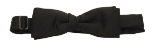 £5.00A smaller boys/child’s black satin ready tied bow tie. This satin bow tie is pre-tied with an easily adjustable neckband. 100% Polyester Bow Length: 10cm Bow Height: 5cm