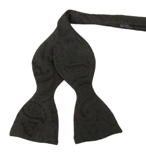 A plain self patterned paisley silk self tied bow tie. 100% Silk