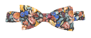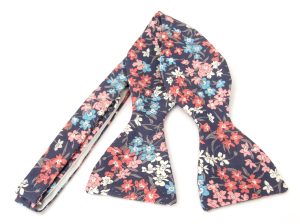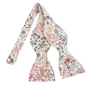 A self tied bow tie made with Liberty fabric. We also have matching pocket squares as well as ties and pre-tied bow ties. 100% Silk Bow Height: 5.5cm Neck Size: 37cm – 56cm