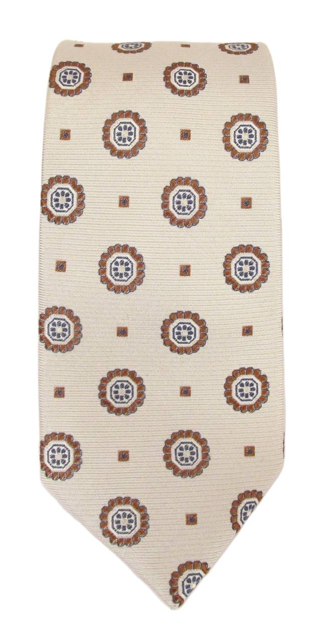 Beige Large Floral Medallion Red Label Silk Tie