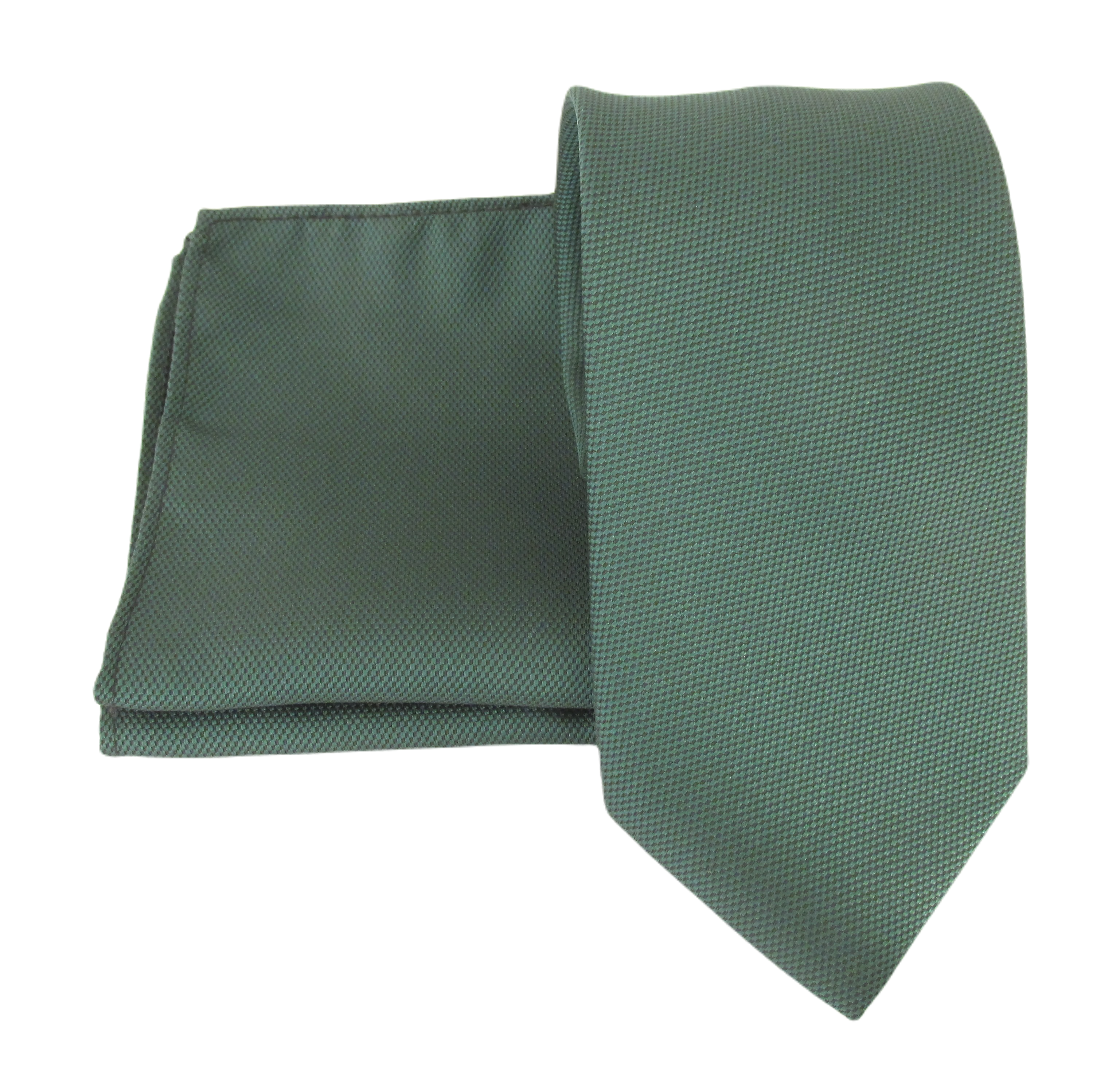 Bottle Green Jacquard Polyester Tie & Pocket Square Set