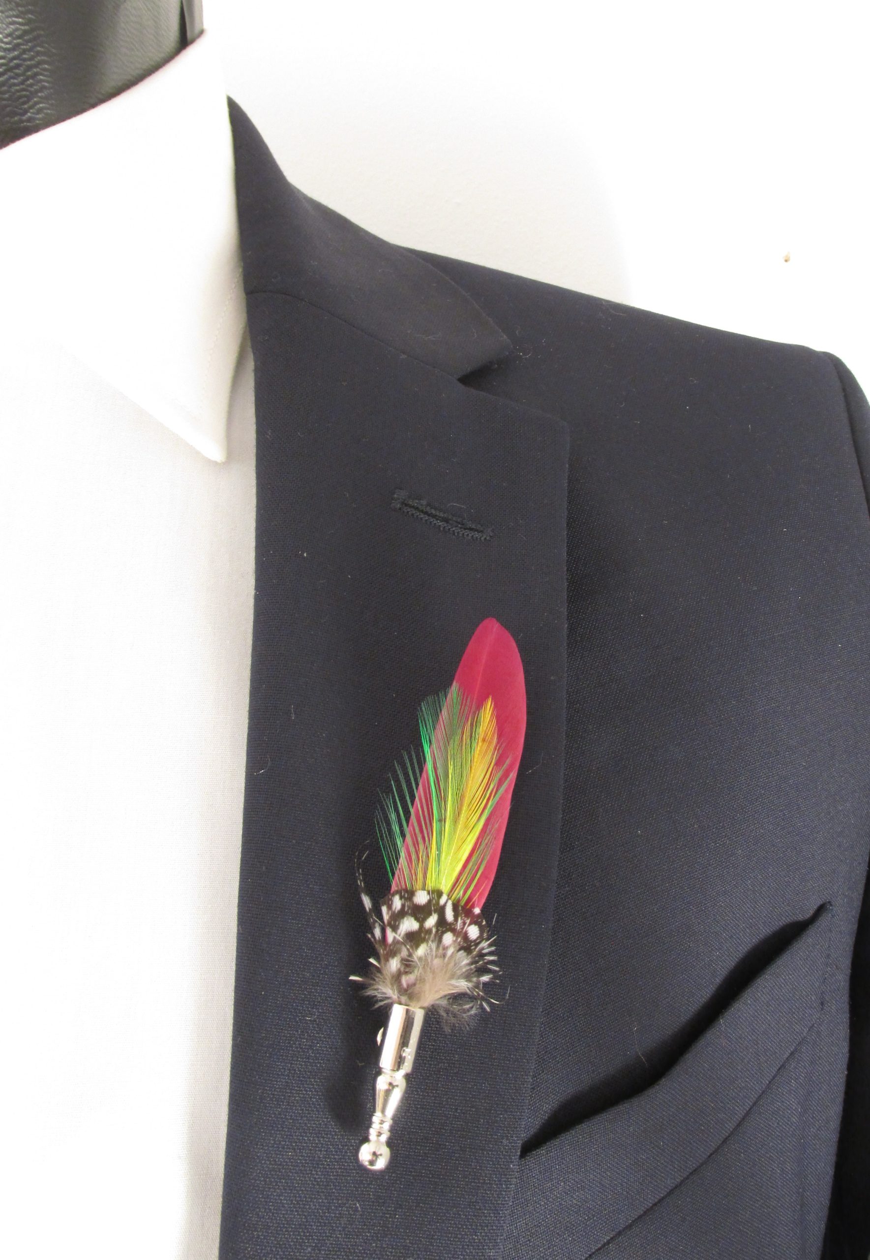 A feather lapel pin / boutonnière to brighten up any jacket.