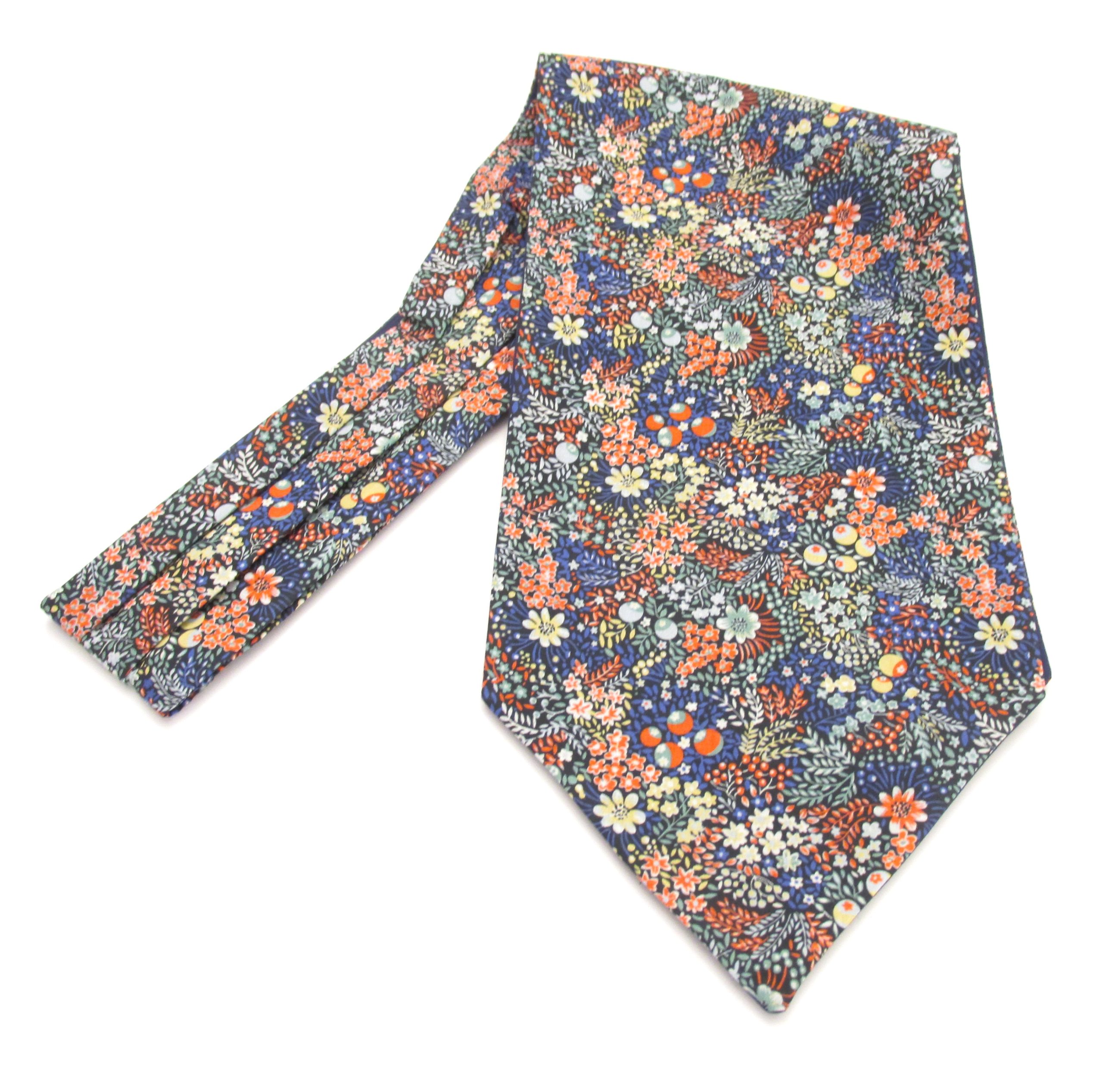 A Van Buck cravat using exclusive Liberty Tana Lawn cotton printed fabric. We also have a matching pocket square as well as ties, pre-tied bow ties and self-tie bow ties. This new range includes a variety of different Liberty patterns which are perfect for all events.
