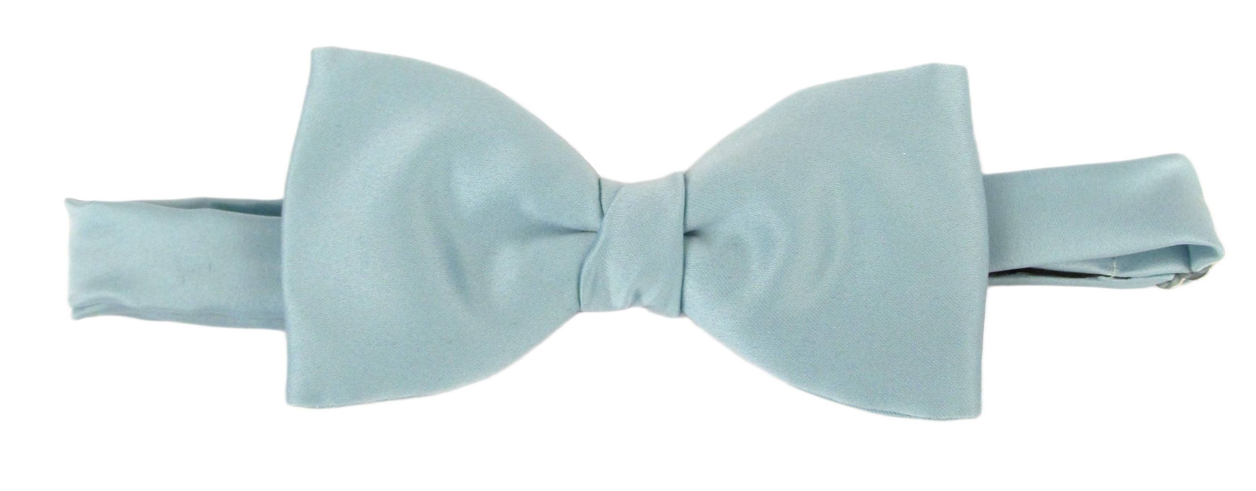 A Satin Ready Tied Bow Tie. This satin bow tie is pre-tied with an easily adjustable neckband. Also available as a pocket square, self tie bow tie and tie.
