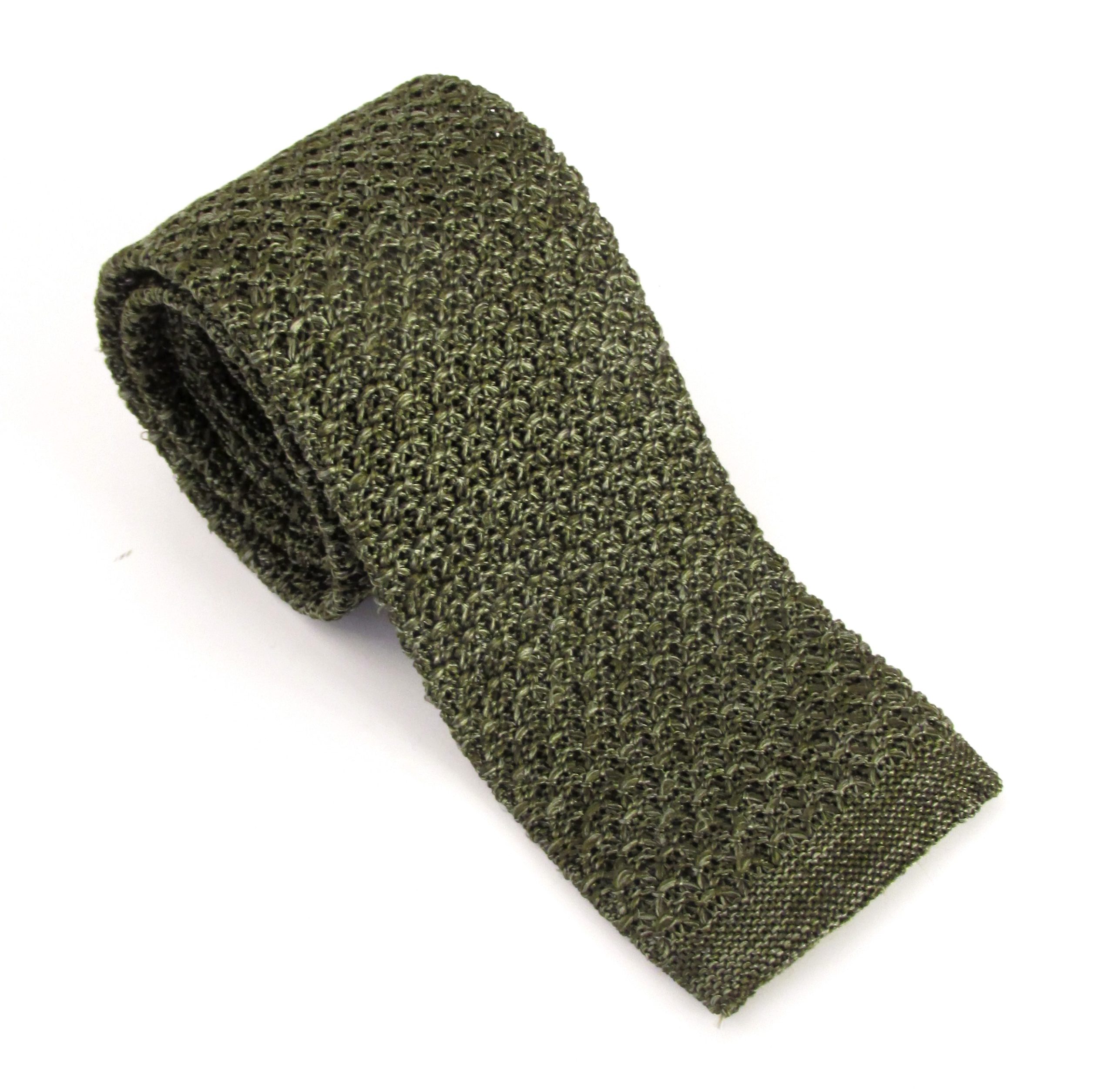 Khaki Green knitted silk tie.
