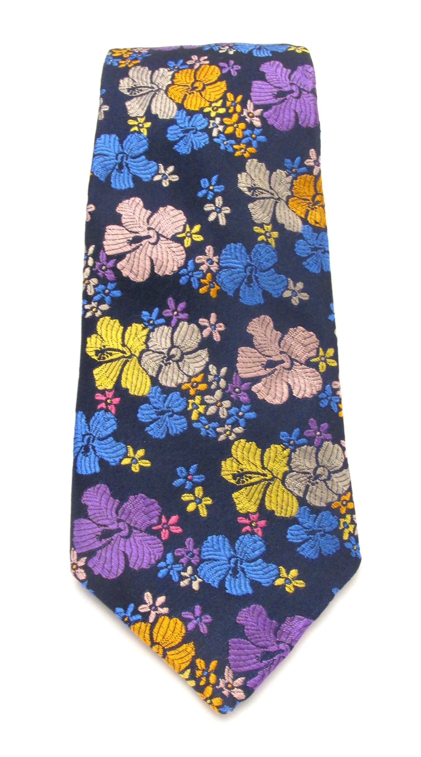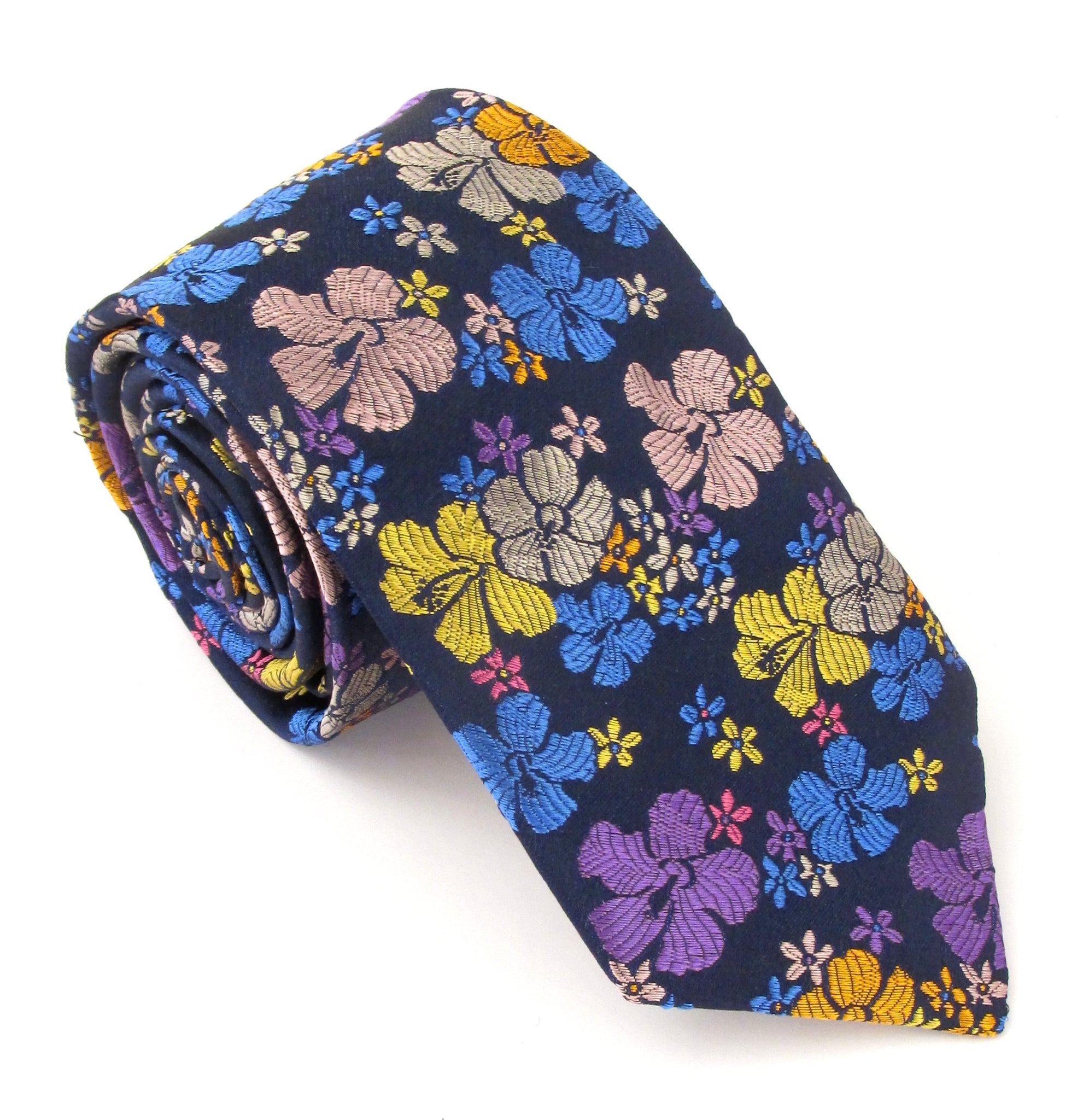 Limited Edition Navy Blue with Multicoloured Large Pansy Silk Tie