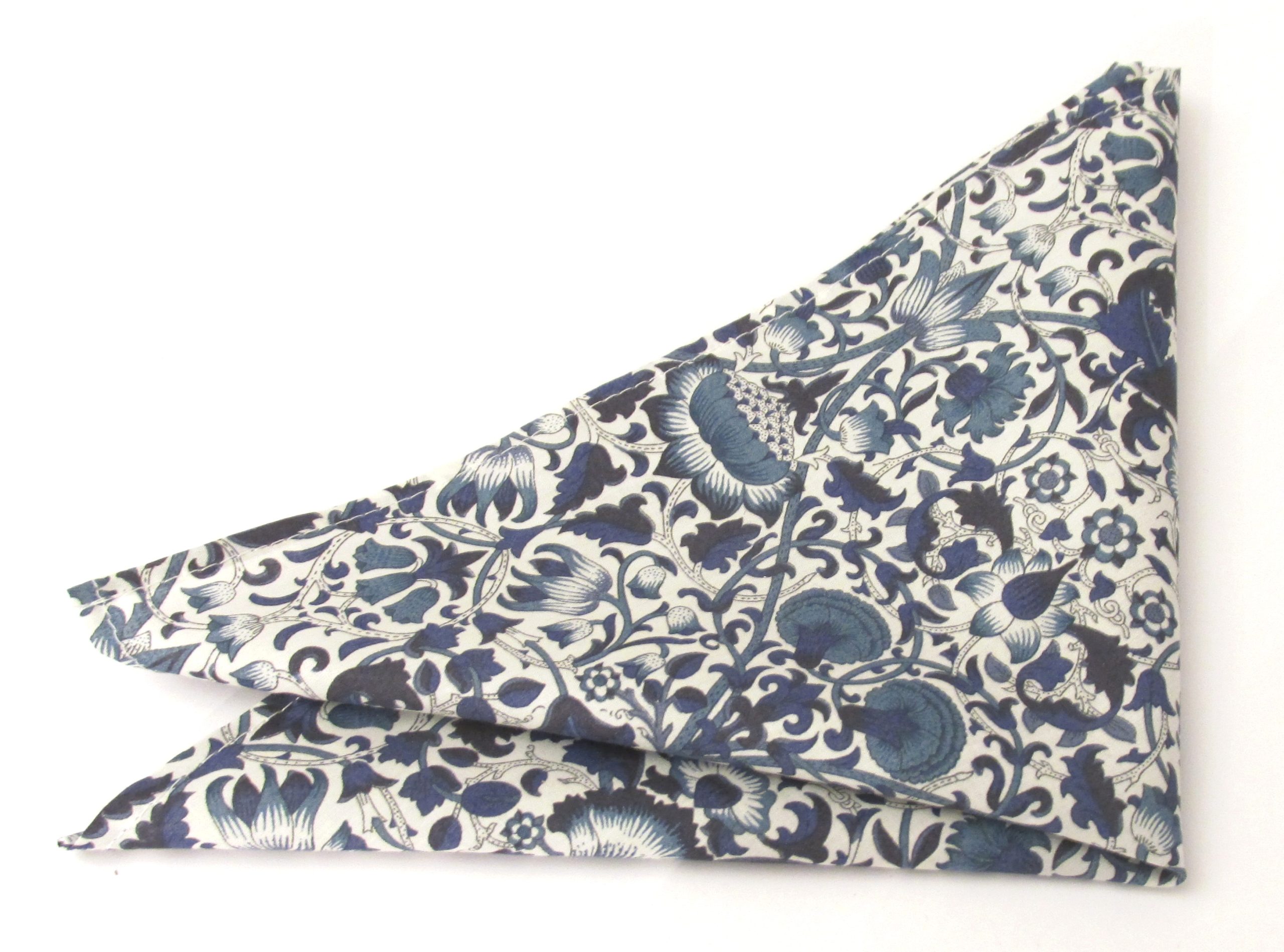 Lodden Navy Cotton Pocket Square Made with Liberty Fabric