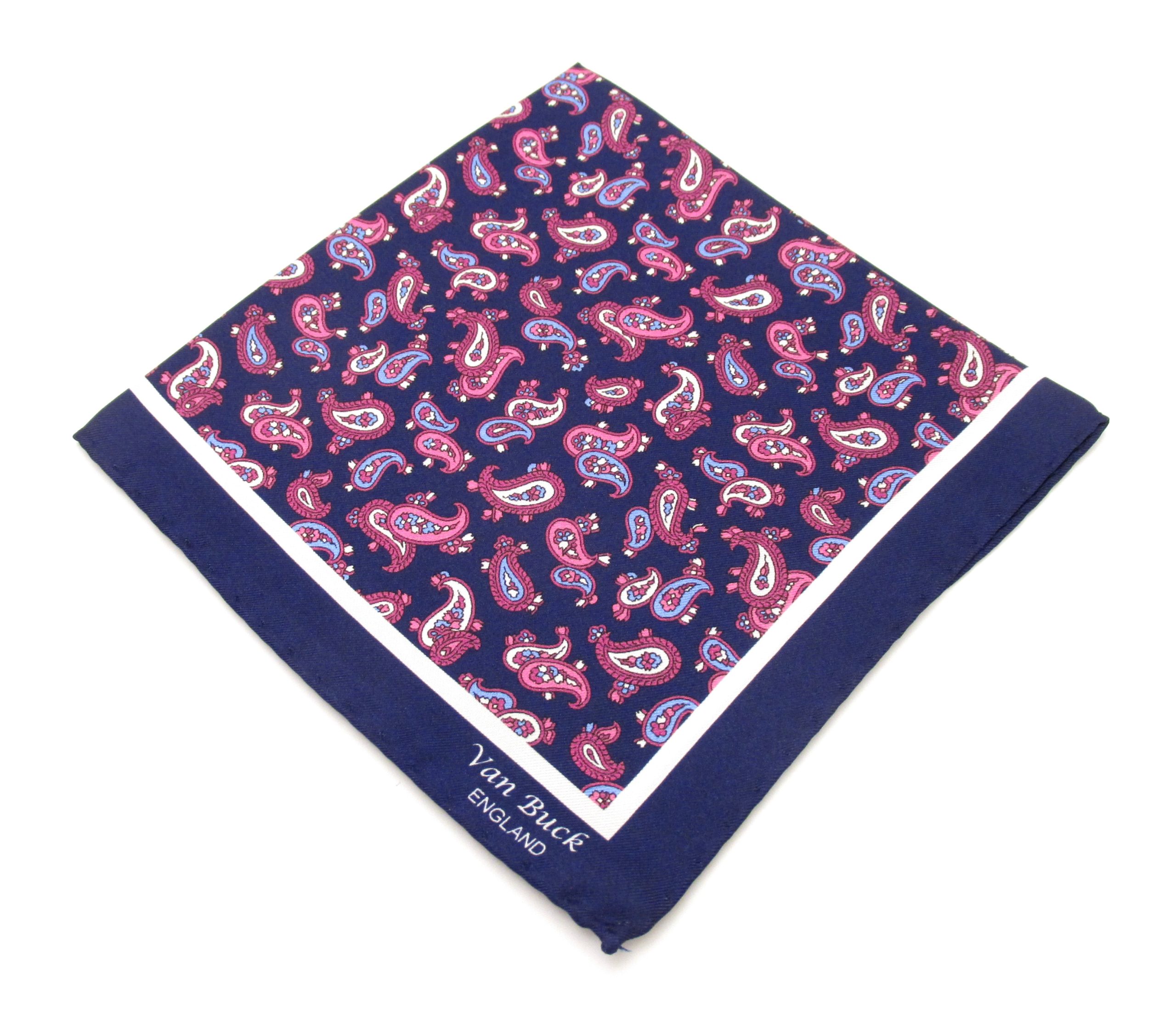 Navy Blue & Pink Paisley Silk Fancy Pocket Square