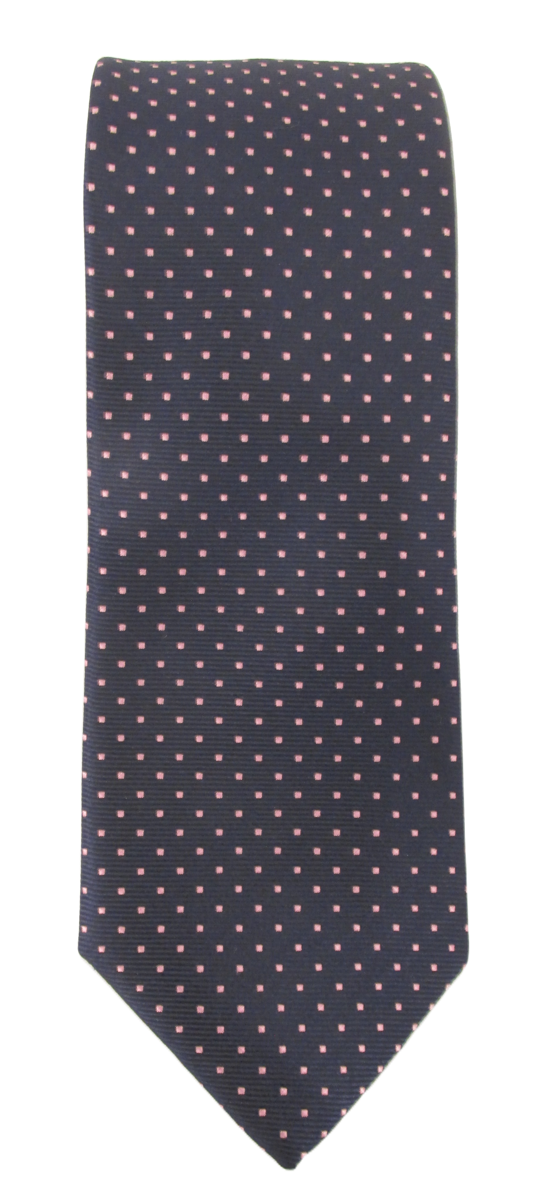 Navy Blue Silk Tie With Pink Pin Dots