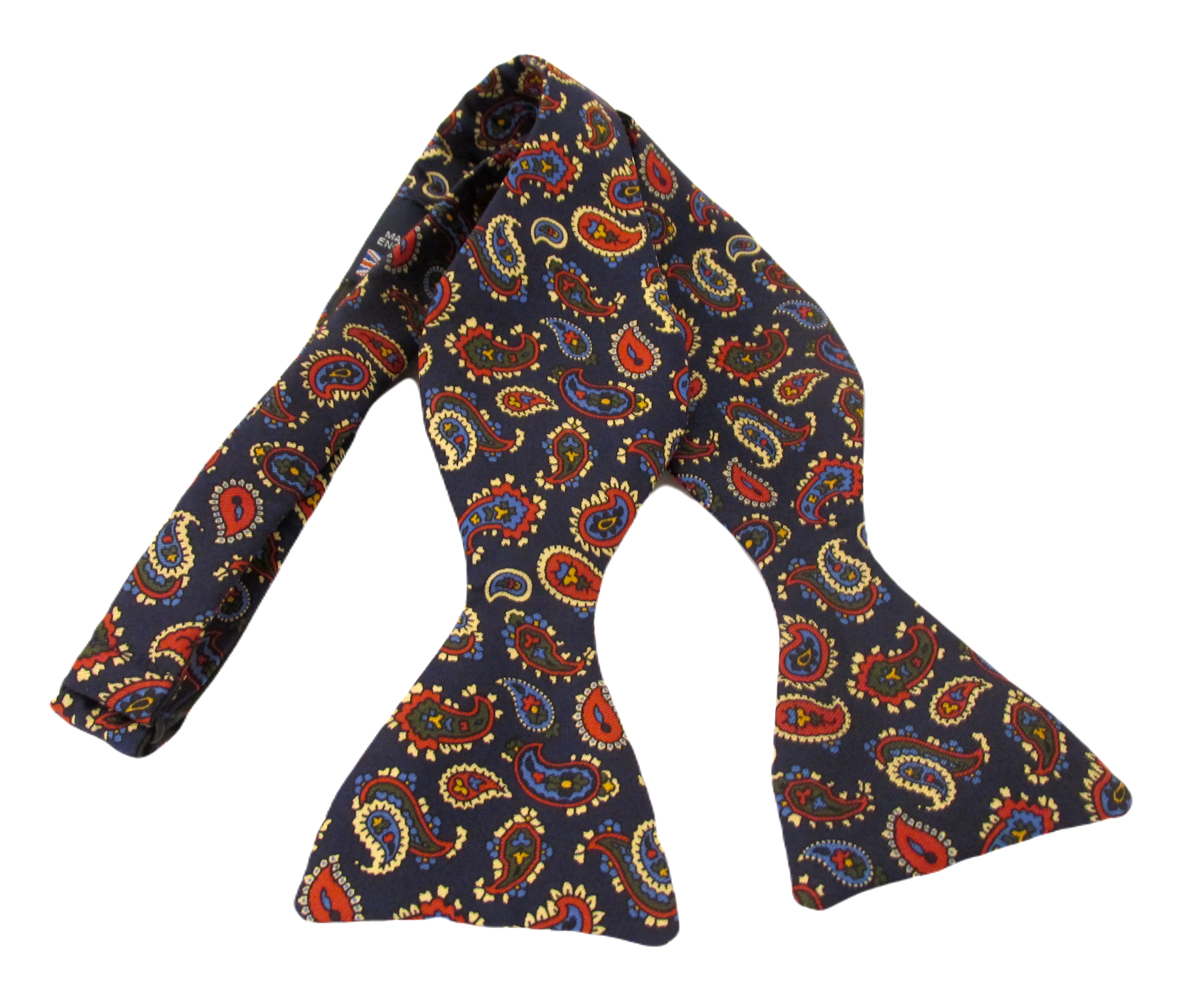 Navy Cream Paisley Printed Silk Self Tied Bow