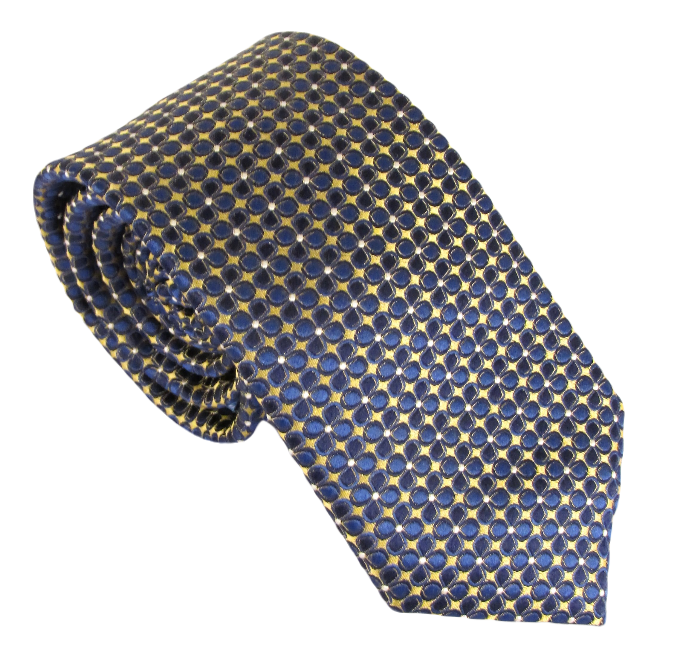 Navy & Gold Small Cloverleaf London Silk Tie