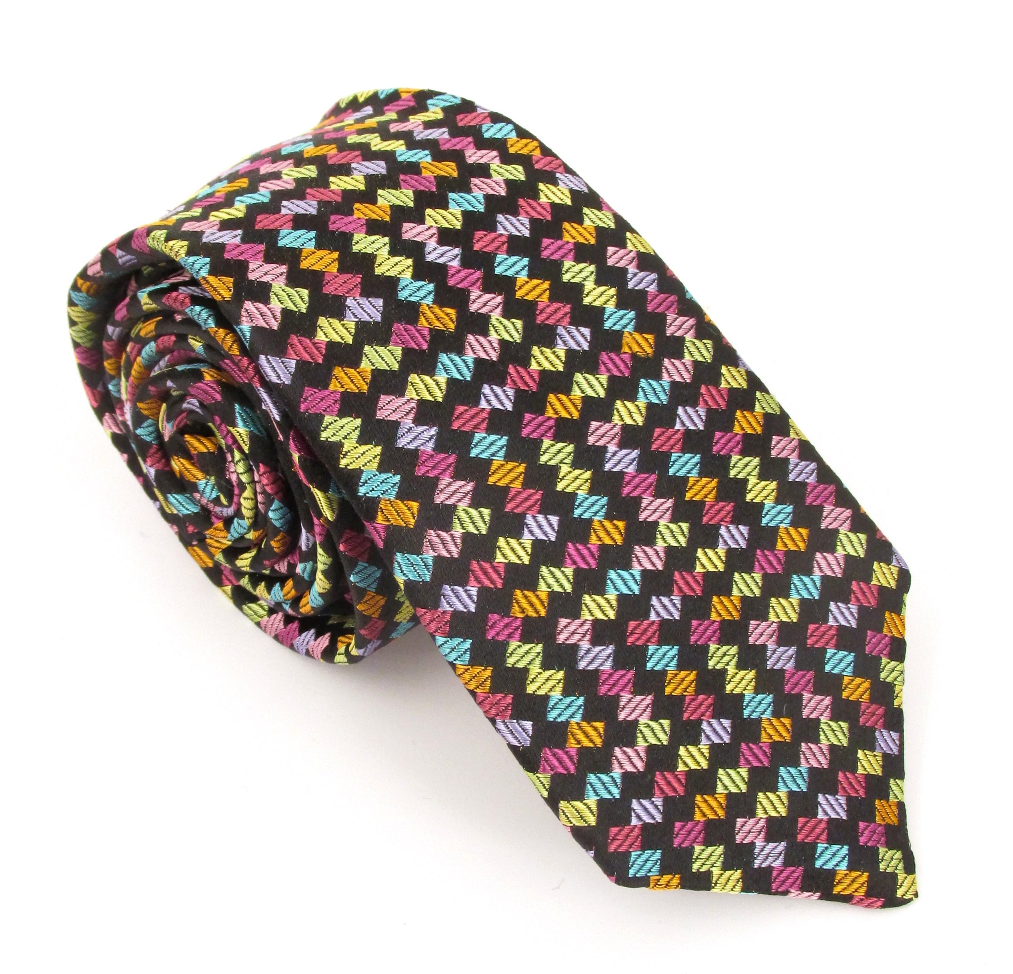 Van Buck Limited Edition Black with Multicoloured Small Blocks Silk Tie